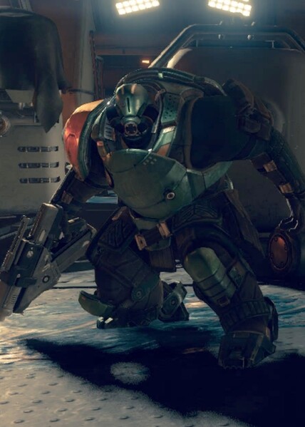 This image is a screenshot of a character or AI unit from the Destiny series of first-person shooter video games developed by Bungie Studios and published by Bungie or Activision. It falls under the screenshot category for a copyrighted computer game or video game, and the copyright for it is most likely held by the company that developed the game. It is believed that the use of a limited number of web-resolution screenshots: