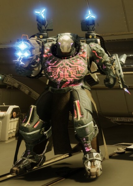 This image is a screenshot of a character or AI unit from the Destiny series of first-person shooter video games developed by Bungie Studios and published by Bungie or Activision. It falls under the screenshot category for a copyrighted computer game or video game, and the copyright for it is most likely held by the company that developed the game. It is believed that the use of a limited number of web-resolution screenshots: