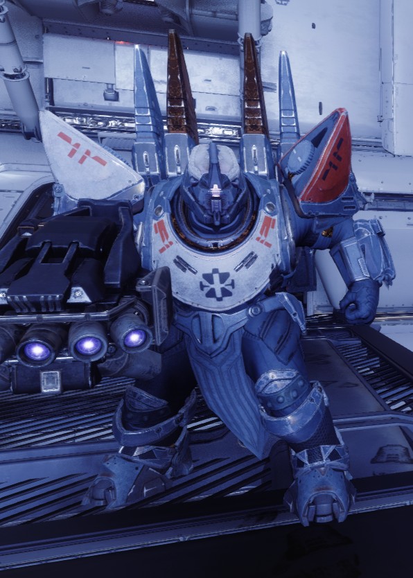 This image is a screenshot of a character or AI unit from the Destiny series of first-person shooter video games developed by Bungie Studios and published by Bungie or Activision. It falls under the screenshot category for a copyrighted computer game or video game, and the copyright for it is most likely held by the company that developed the game. It is believed that the use of a limited number of web-resolution screenshots: