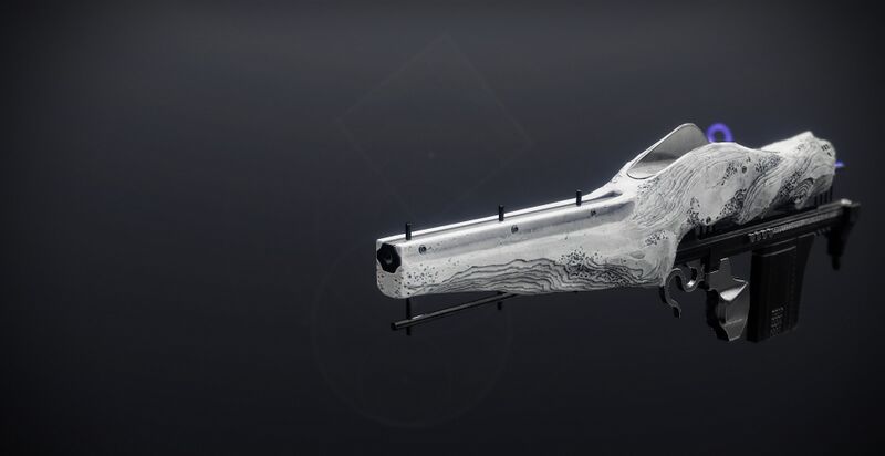 This image is a screenshot of a weapon from the Destiny series of first-person shooter video games developed by Bungie Studios and published by Bungie or Activision. It falls under the screenshot category for a copyrighted computer game or video game, and the copyright for it is most likely held by the company that developed the game. It is believed that the use of a limited number of web-resolution screenshots: