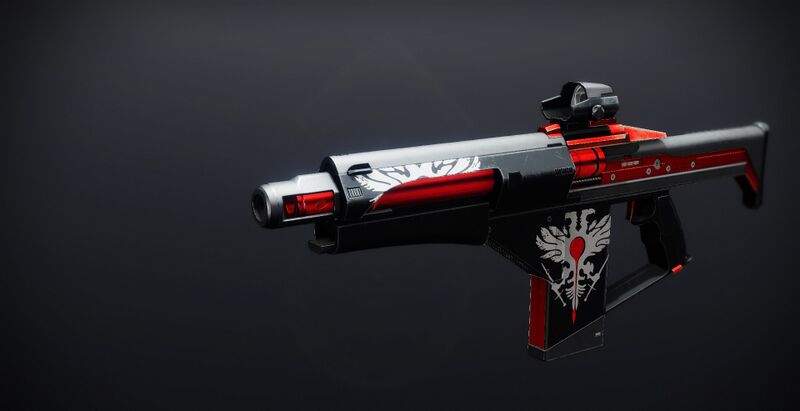 This image is a screenshot of a weapon from the Destiny series of first-person shooter video games developed by Bungie Studios and published by Bungie or Activision. It falls under the screenshot category for a copyrighted computer game or video game, and the copyright for it is most likely held by the company that developed the game. It is believed that the use of a limited number of web-resolution screenshots: