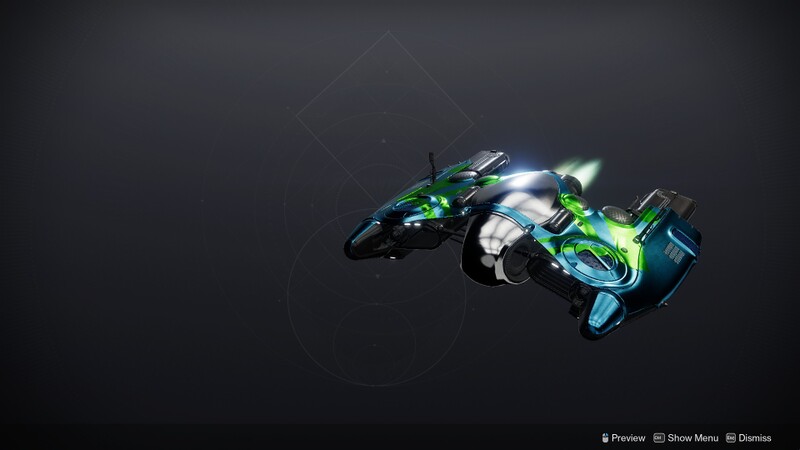 This image is a screenshot of a vehicle from the Destiny series of first-person shooter video games developed by Bungie Studios and published by Bungie or Activision. It falls under the screenshot category for a copyrighted computer game or video game, and the copyright for it is most likely held by the company that developed the game. It is believed that the use of a limited number of web-resolution screenshots: