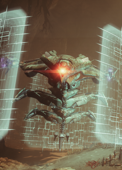 This image is a screenshot of a character or AI unit from the Destiny series of first-person shooter video games developed by Bungie Studios and published by Bungie or Activision. It falls under the screenshot category for a copyrighted computer game or video game, and the copyright for it is most likely held by the company that developed the game. It is believed that the use of a limited number of web-resolution screenshots: