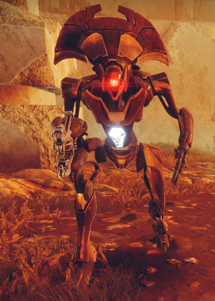 This image is a screenshot of a character or AI unit from the Destiny series of first-person shooter video games developed by Bungie Studios and published by Bungie or Activision. It falls under the screenshot category for a copyrighted computer game or video game, and the copyright for it is most likely held by the company that developed the game. It is believed that the use of a limited number of web-resolution screenshots: