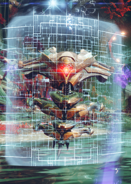 This image is a screenshot of a character or AI unit from the Destiny series of first-person shooter video games developed by Bungie Studios and published by Bungie or Activision. It falls under the screenshot category for a copyrighted computer game or video game, and the copyright for it is most likely held by the company that developed the game. It is believed that the use of a limited number of web-resolution screenshots: