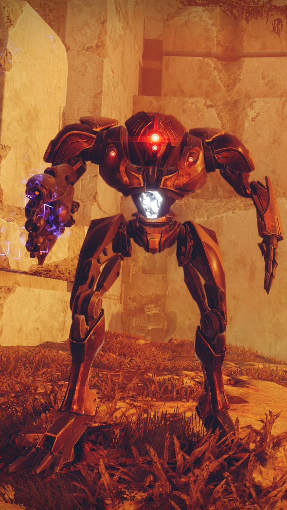 This image is a screenshot of a character or AI unit from the Destiny series of first-person shooter video games developed by Bungie Studios and published by Bungie or Activision. It falls under the screenshot category for a copyrighted computer game or video game, and the copyright for it is most likely held by the company that developed the game. It is believed that the use of a limited number of web-resolution screenshots:
