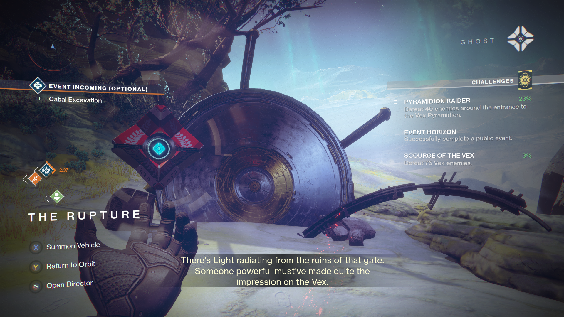 Ghost: "There's Light radiating out from the ruins of that gate. Someone powerful must have made quite the impression on the Vex."