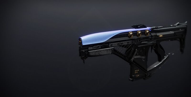 This image is a screenshot of a weapon from the Destiny series of first-person shooter video games developed by Bungie Studios and published by Bungie or Activision. It falls under the screenshot category for a copyrighted computer game or video game, and the copyright for it is most likely held by the company that developed the game. It is believed that the use of a limited number of web-resolution screenshots: