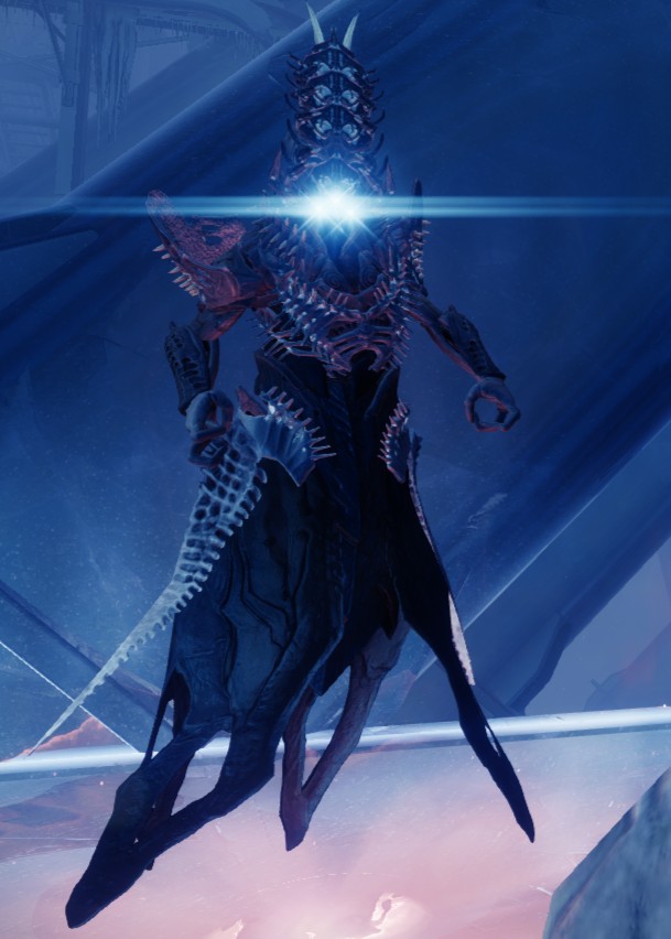 This image is a screenshot of a character or AI unit from the Destiny series of first-person shooter video games developed by Bungie Studios and published by Bungie or Activision. It falls under the screenshot category for a copyrighted computer game or video game, and the copyright for it is most likely held by the company that developed the game. It is believed that the use of a limited number of web-resolution screenshots: