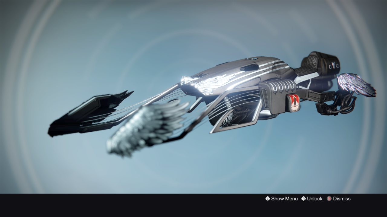 This image is a screenshot of a vehicle from the Destiny series of first-person shooter video games developed by Bungie Studios and published by Bungie or Activision. It falls under the screenshot category for a copyrighted computer game or video game, and the copyright for it is most likely held by the company that developed the game. It is believed that the use of a limited number of web-resolution screenshots: