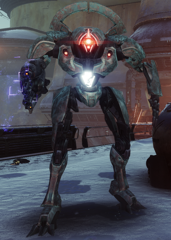 This image is a screenshot of a character or AI unit from the Destiny series of first-person shooter video games developed by Bungie Studios and published by Bungie or Activision. It falls under the screenshot category for a copyrighted computer game or video game, and the copyright for it is most likely held by the company that developed the game. It is believed that the use of a limited number of web-resolution screenshots: