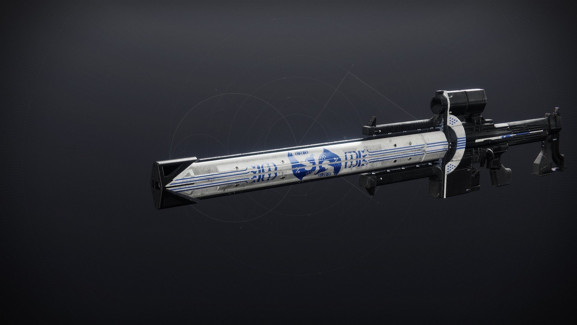 This image is a screenshot of a weapon from the Destiny series of first-person shooter video games developed by Bungie Studios and published by Bungie or Activision. It falls under the screenshot category for a copyrighted computer game or video game, and the copyright for it is most likely held by the company that developed the game. It is believed that the use of a limited number of web-resolution screenshots: