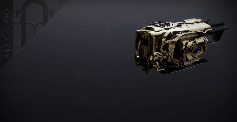 This image is a screenshot of a weapon from the Destiny series of first-person shooter video games developed by Bungie Studios and published by Bungie or Activision. It falls under the screenshot category for a copyrighted computer game or video game, and the copyright for it is most likely held by the company that developed the game. It is believed that the use of a limited number of web-resolution screenshots: