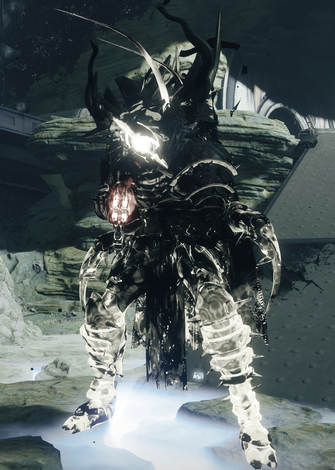 This image is a screenshot of a character or AI unit from the Destiny series of first-person shooter video games developed by Bungie Studios and published by Bungie or Activision. It falls under the screenshot category for a copyrighted computer game or video game, and the copyright for it is most likely held by the company that developed the game. It is believed that the use of a limited number of web-resolution screenshots: