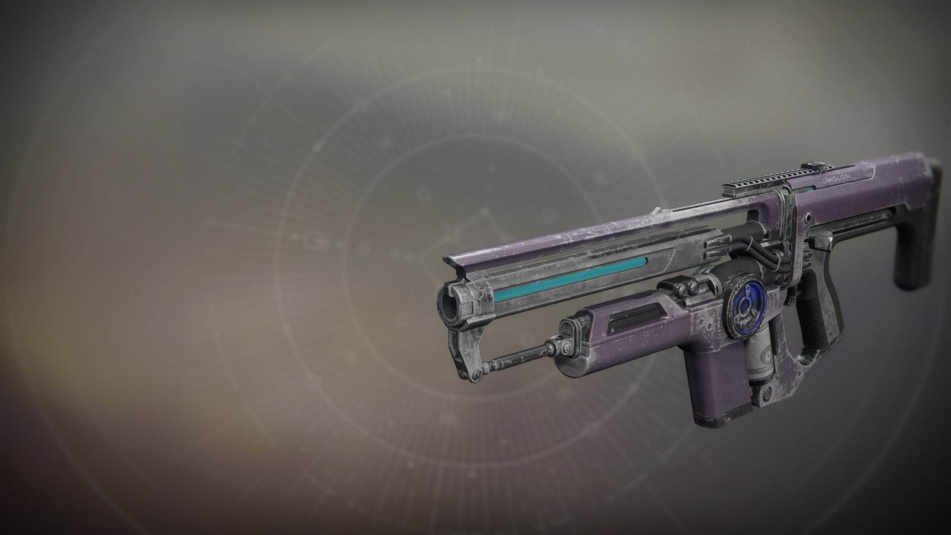 This image is a screenshot of a weapon from the Destiny series of first-person shooter video games developed by Bungie Studios and published by Bungie or Activision. It falls under the screenshot category for a copyrighted computer game or video game, and the copyright for it is most likely held by the company that developed the game. It is believed that the use of a limited number of web-resolution screenshots: