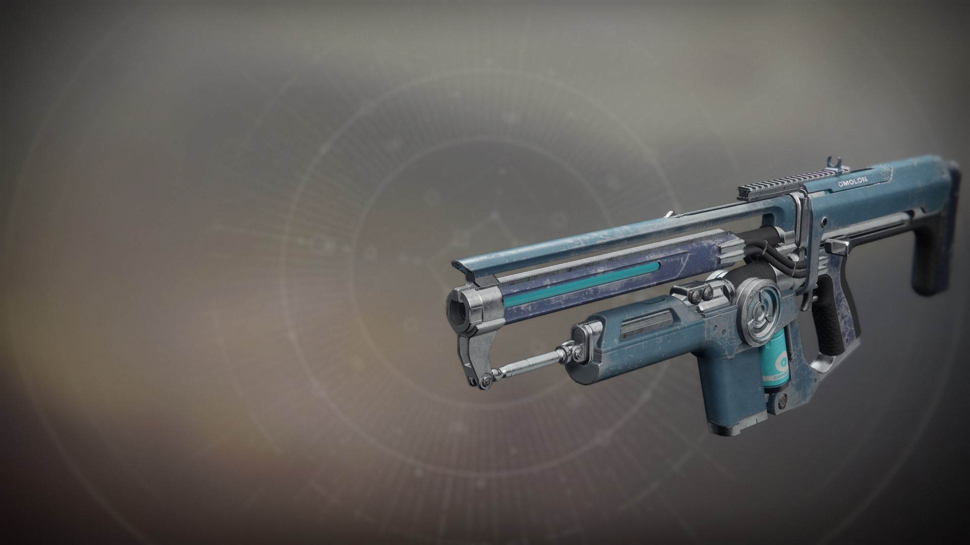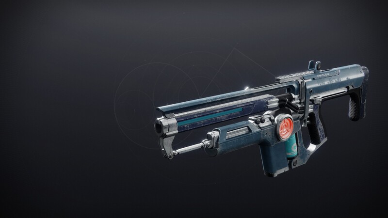 This image is a screenshot of a weapon from the Destiny series of first-person shooter video games developed by Bungie Studios and published by Bungie or Activision. It falls under the screenshot category for a copyrighted computer game or video game, and the copyright for it is most likely held by the company that developed the game. It is believed that the use of a limited number of web-resolution screenshots: