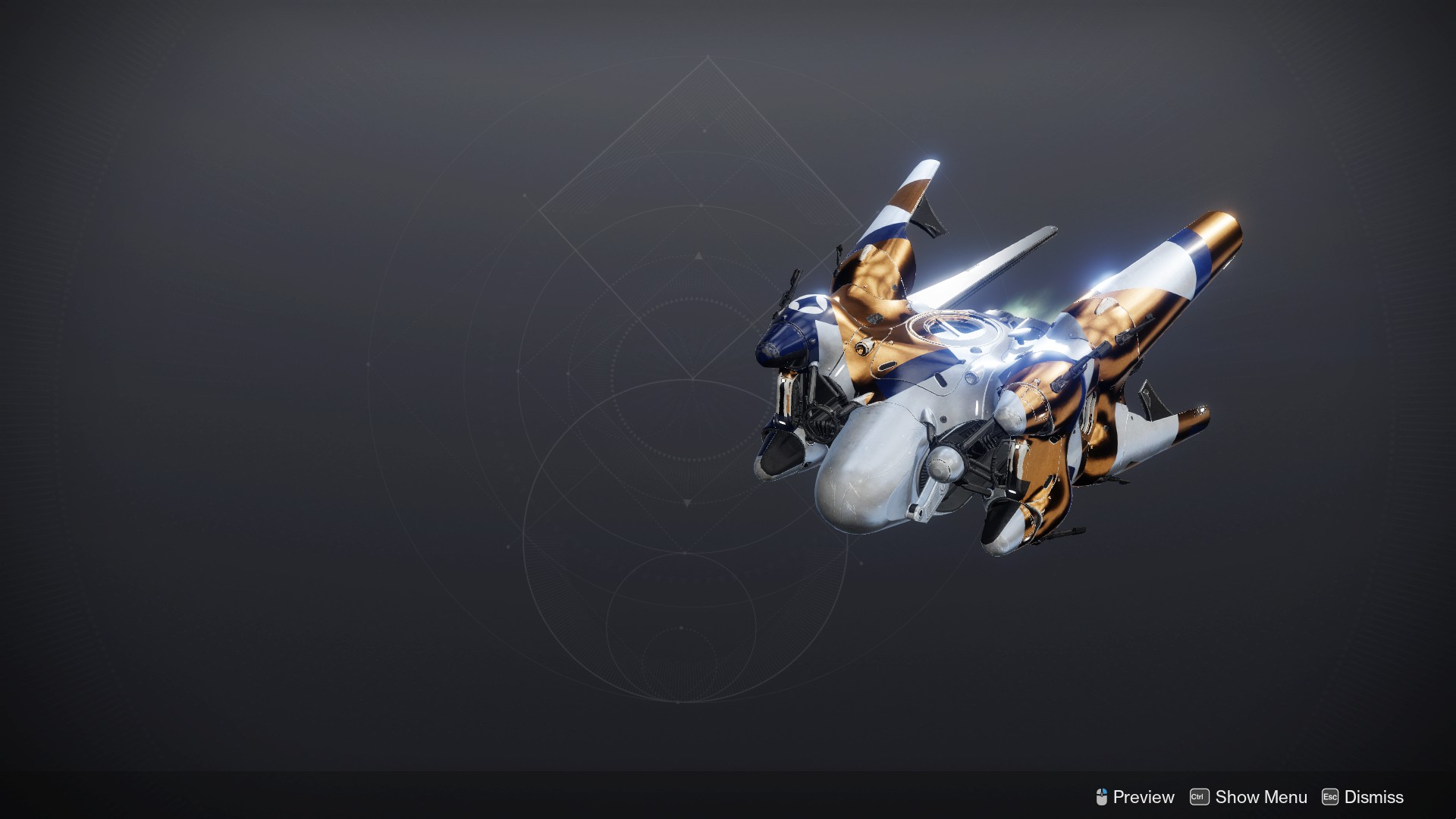 This image is a screenshot of a vehicle from the Destiny series of first-person shooter video games developed by Bungie Studios and published by Bungie or Activision. It falls under the screenshot category for a copyrighted computer game or video game, and the copyright for it is most likely held by the company that developed the game. It is believed that the use of a limited number of web-resolution screenshots:
