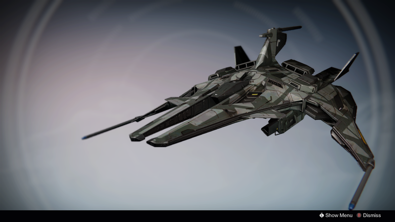 This image is a screenshot of a vehicle from the Destiny series of first-person shooter video games developed by Bungie Studios and published by Bungie or Activision. It falls under the screenshot category for a copyrighted computer game or video game, and the copyright for it is most likely held by the company that developed the game. It is believed that the use of a limited number of web-resolution screenshots:
