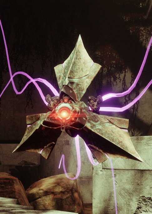 This image is a screenshot of a character or AI unit from the Destiny series of first-person shooter video games developed by Bungie Studios and published by Bungie or Activision. It falls under the screenshot category for a copyrighted computer game or video game, and the copyright for it is most likely held by the company that developed the game. It is believed that the use of a limited number of web-resolution screenshots: