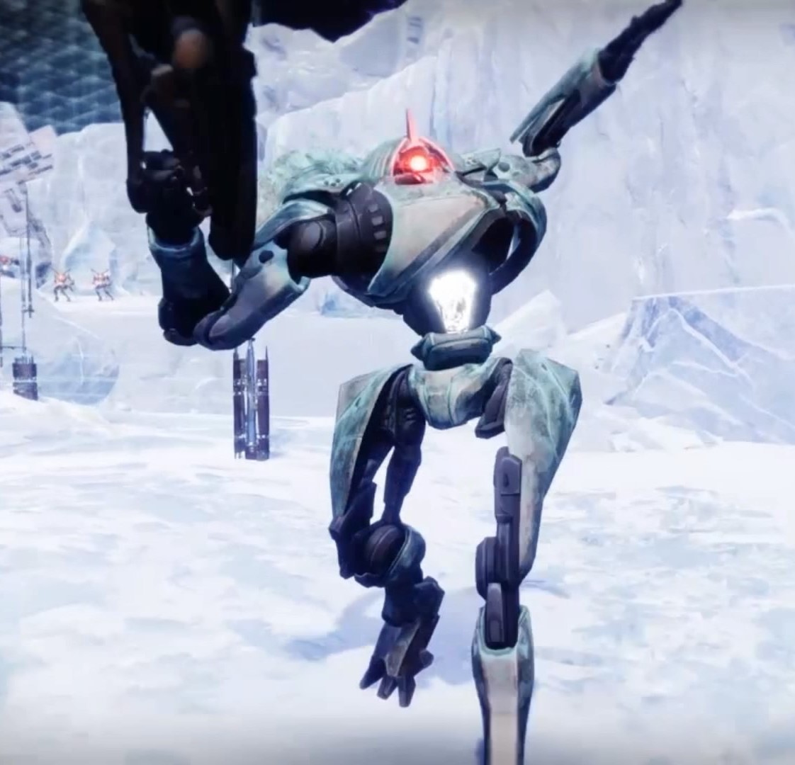 This image is a screenshot of a character or AI unit from the Destiny series of first-person shooter video games developed by Bungie Studios and published by Bungie or Activision. It falls under the screenshot category for a copyrighted computer game or video game, and the copyright for it is most likely held by the company that developed the game. It is believed that the use of a limited number of web-resolution screenshots: