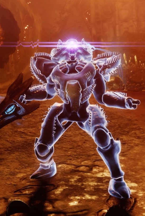 This image is a screenshot of a character or AI unit from the Destiny series of first-person shooter video games developed by Bungie Studios and published by Bungie or Activision. It falls under the screenshot category for a copyrighted computer game or video game, and the copyright for it is most likely held by the company that developed the game. It is believed that the use of a limited number of web-resolution screenshots: