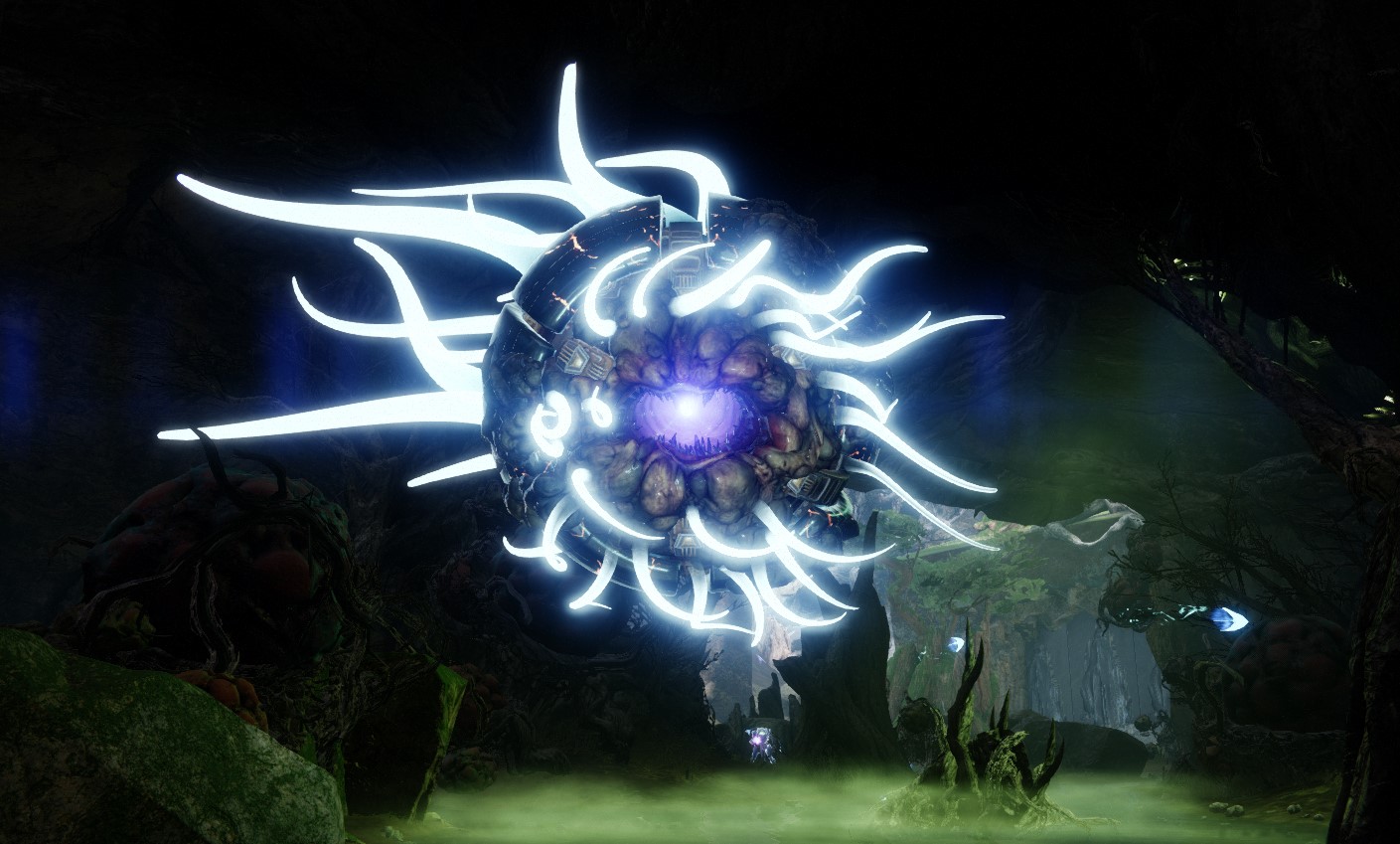 This image is a screenshot of a character or AI unit from the Destiny series of first-person shooter video games developed by Bungie Studios and published by Bungie or Activision. It falls under the screenshot category for a copyrighted computer game or video game, and the copyright for it is most likely held by the company that developed the game. It is believed that the use of a limited number of web-resolution screenshots: