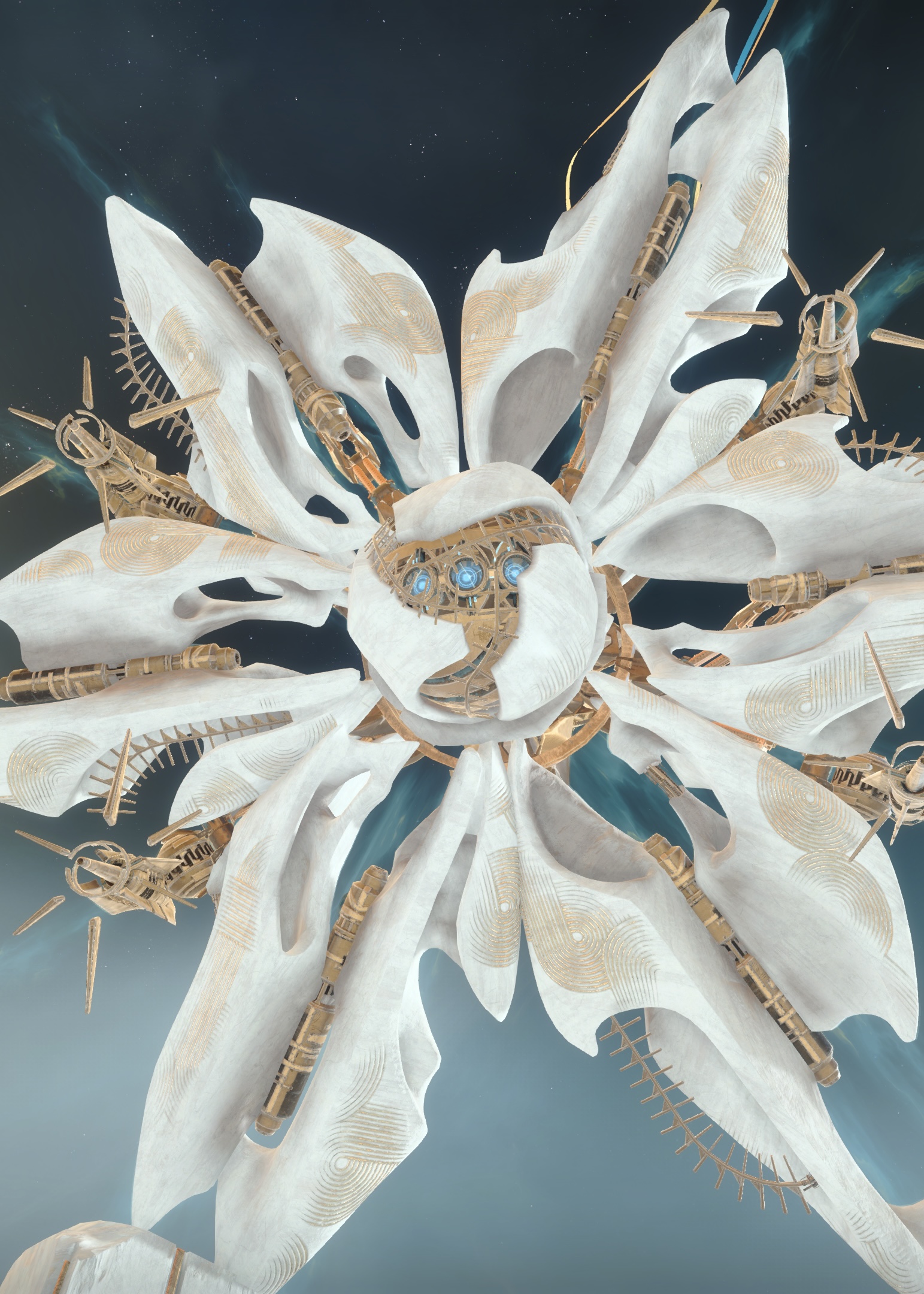 This image is a screenshot of a character or AI unit from the Destiny series of first-person shooter video games developed by Bungie Studios and published by Bungie or Activision. It falls under the screenshot category for a copyrighted computer game or video game, and the copyright for it is most likely held by the company that developed the game. It is believed that the use of a limited number of web-resolution screenshots: