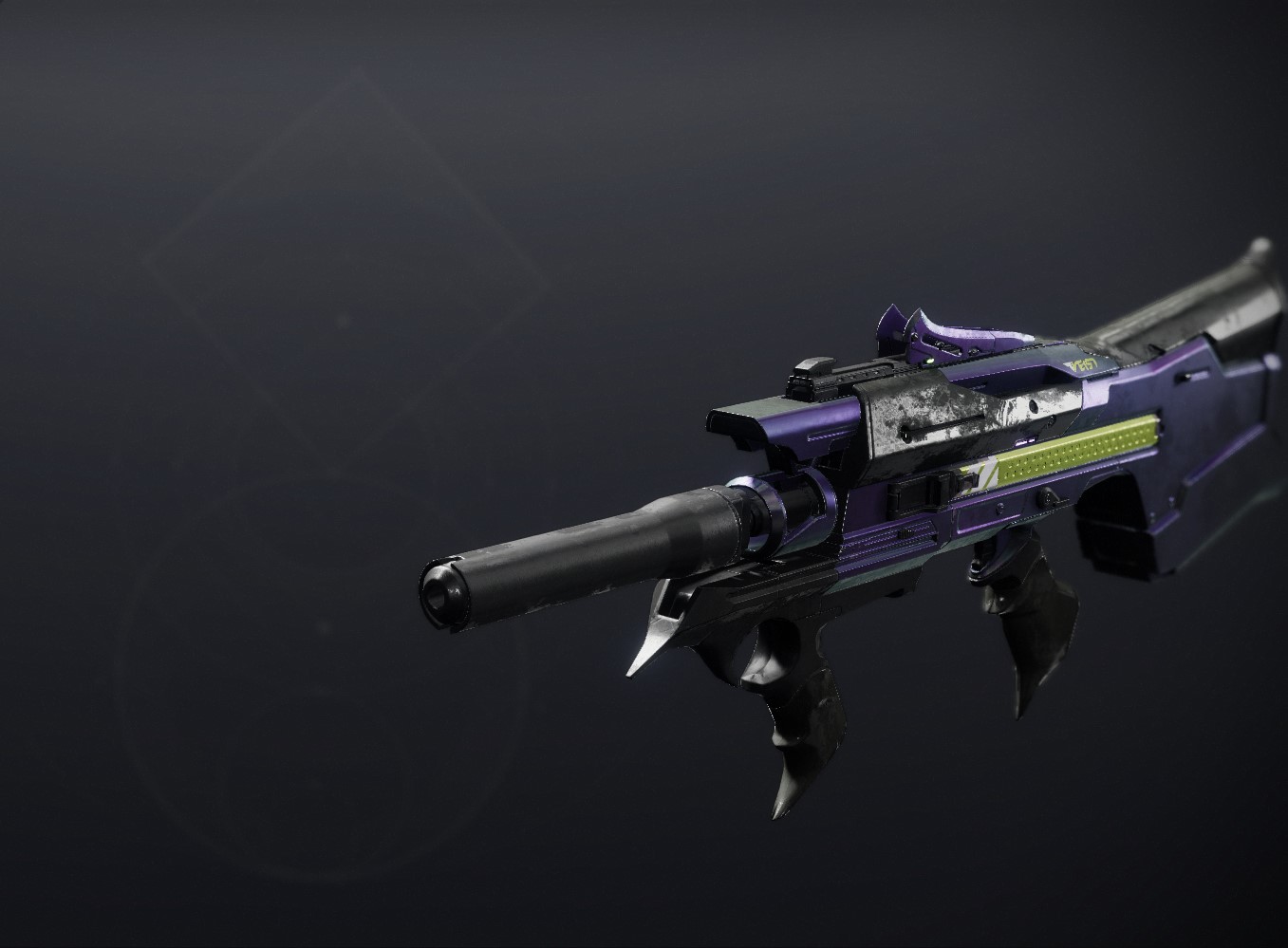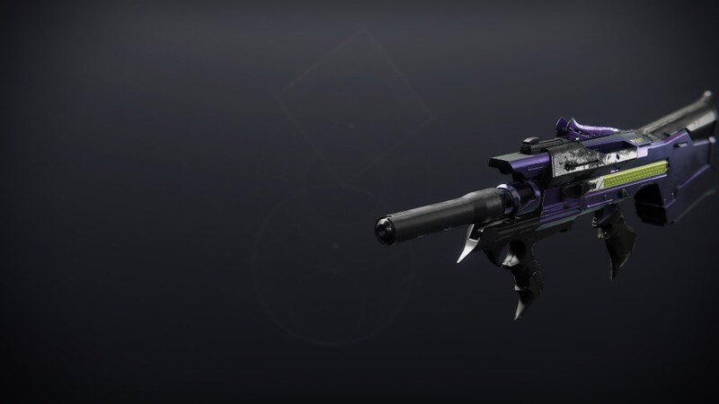 This image is a screenshot of a weapon from the Destiny series of first-person shooter video games developed by Bungie Studios and published by Bungie or Activision. It falls under the screenshot category for a copyrighted computer game or video game, and the copyright for it is most likely held by the company that developed the game. It is believed that the use of a limited number of web-resolution screenshots: