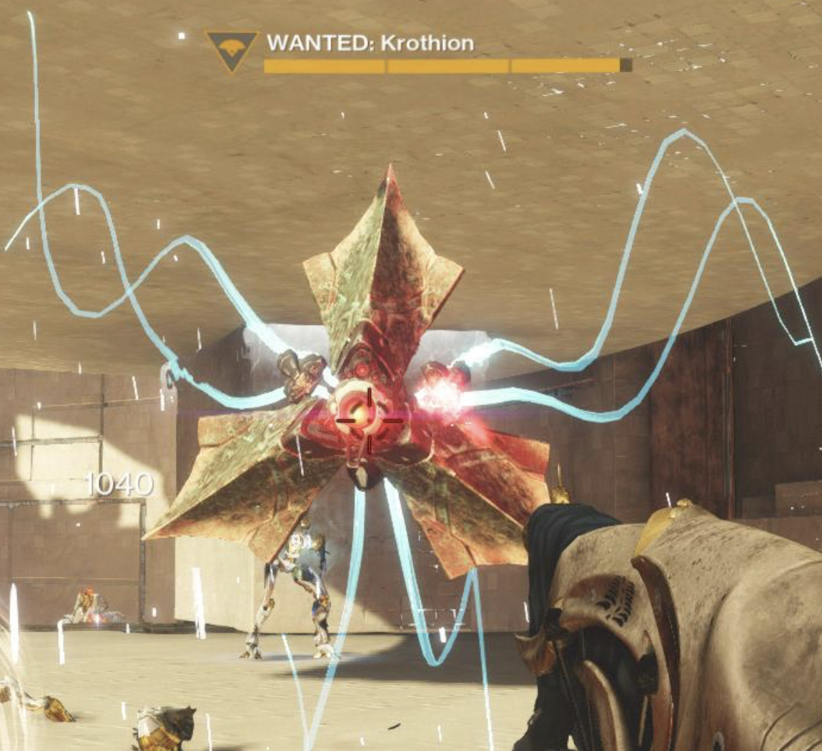 This image is a screenshot of a character or AI unit from the Destiny series of first-person shooter video games developed by Bungie Studios and published by Bungie or Activision. It falls under the screenshot category for a copyrighted computer game or video game, and the copyright for it is most likely held by the company that developed the game. It is believed that the use of a limited number of web-resolution screenshots: