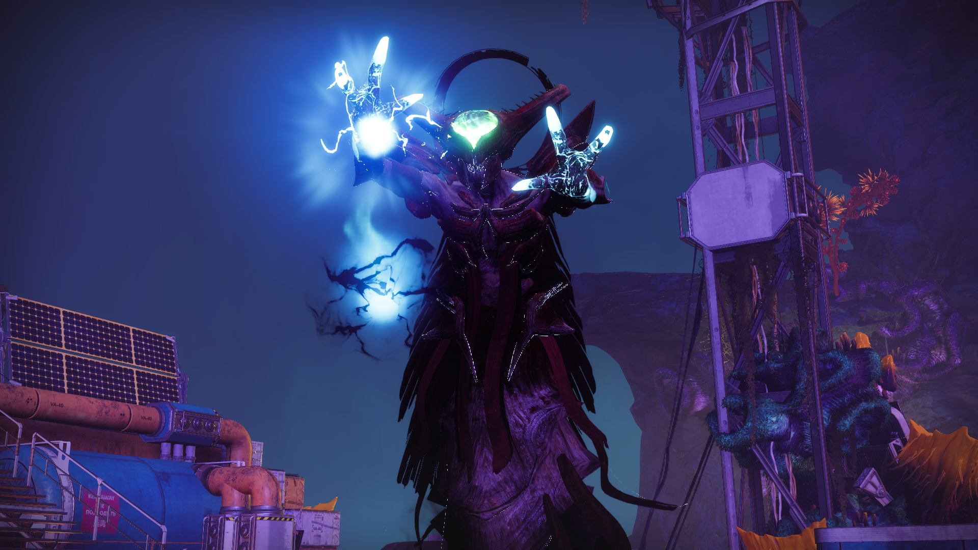 This image is a screenshot of a character or AI unit from the Destiny series of first-person shooter video games developed by Bungie Studios and published by Bungie or Activision. It falls under the screenshot category for a copyrighted computer game or video game, and the copyright for it is most likely held by the company that developed the game. It is believed that the use of a limited number of web-resolution screenshots: