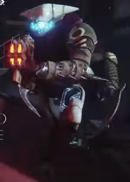 This image is a screenshot of a character or AI unit from the Destiny series of first-person shooter video games developed by Bungie Studios and published by Bungie or Activision. It falls under the screenshot category for a copyrighted computer game or video game, and the copyright for it is most likely held by the company that developed the game. It is believed that the use of a limited number of web-resolution screenshots: