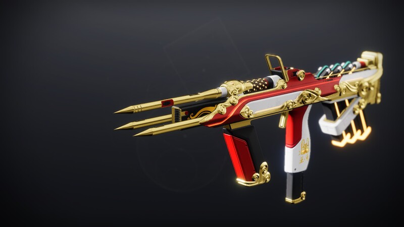 This image is a screenshot of a weapon from the Destiny series of first-person shooter video games developed by Bungie Studios and published by Bungie or Activision. It falls under the screenshot category for a copyrighted computer game or video game, and the copyright for it is most likely held by the company that developed the game. It is believed that the use of a limited number of web-resolution screenshots:
