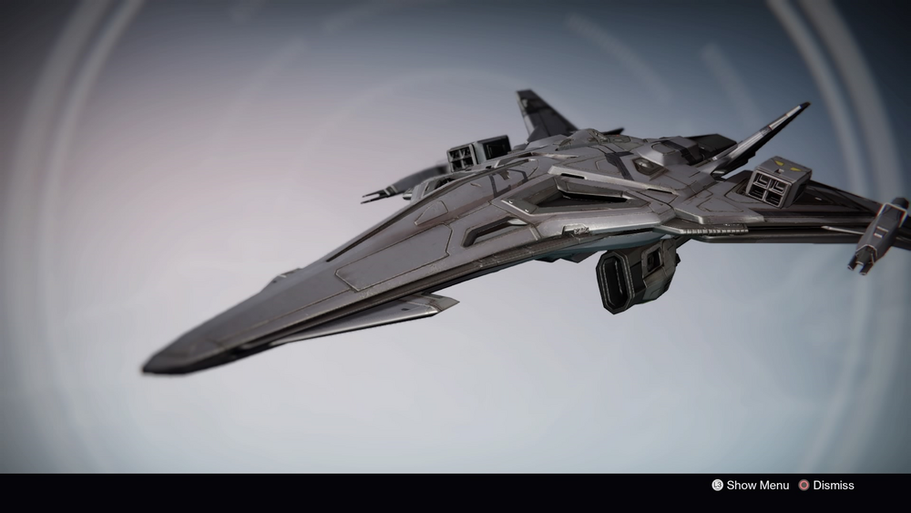 This image is a screenshot of a vehicle from the Destiny series of first-person shooter video games developed by Bungie Studios and published by Bungie or Activision. It falls under the screenshot category for a copyrighted computer game or video game, and the copyright for it is most likely held by the company that developed the game. It is believed that the use of a limited number of web-resolution screenshots: