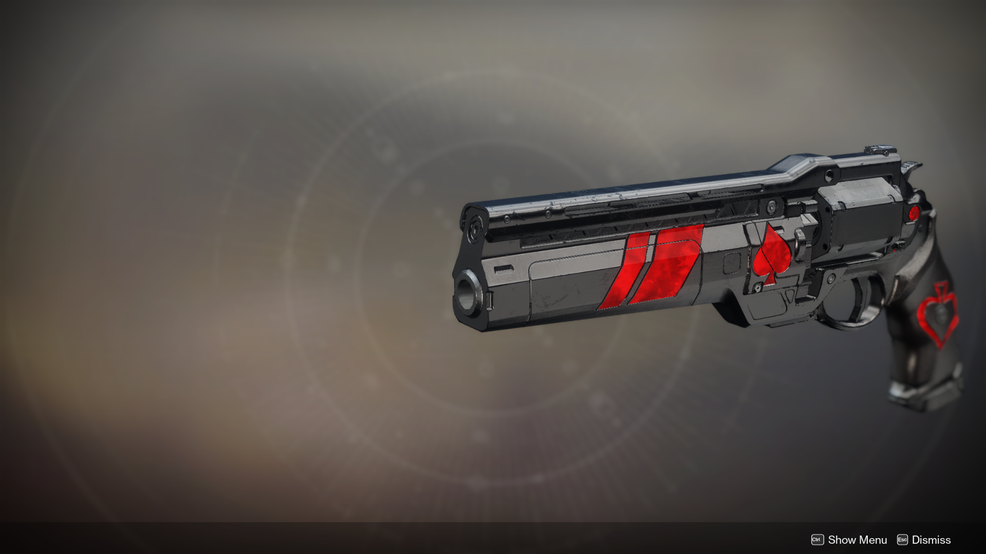 The Exotic Weapon, "Ace of Spades", with the Exotic Ornament, "Last Hand", without any text for easier viewing.