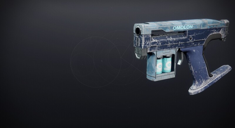 This image is a screenshot of a weapon from the Destiny series of first-person shooter video games developed by Bungie Studios and published by Bungie or Activision. It falls under the screenshot category for a copyrighted computer game or video game, and the copyright for it is most likely held by the company that developed the game. It is believed that the use of a limited number of web-resolution screenshots: