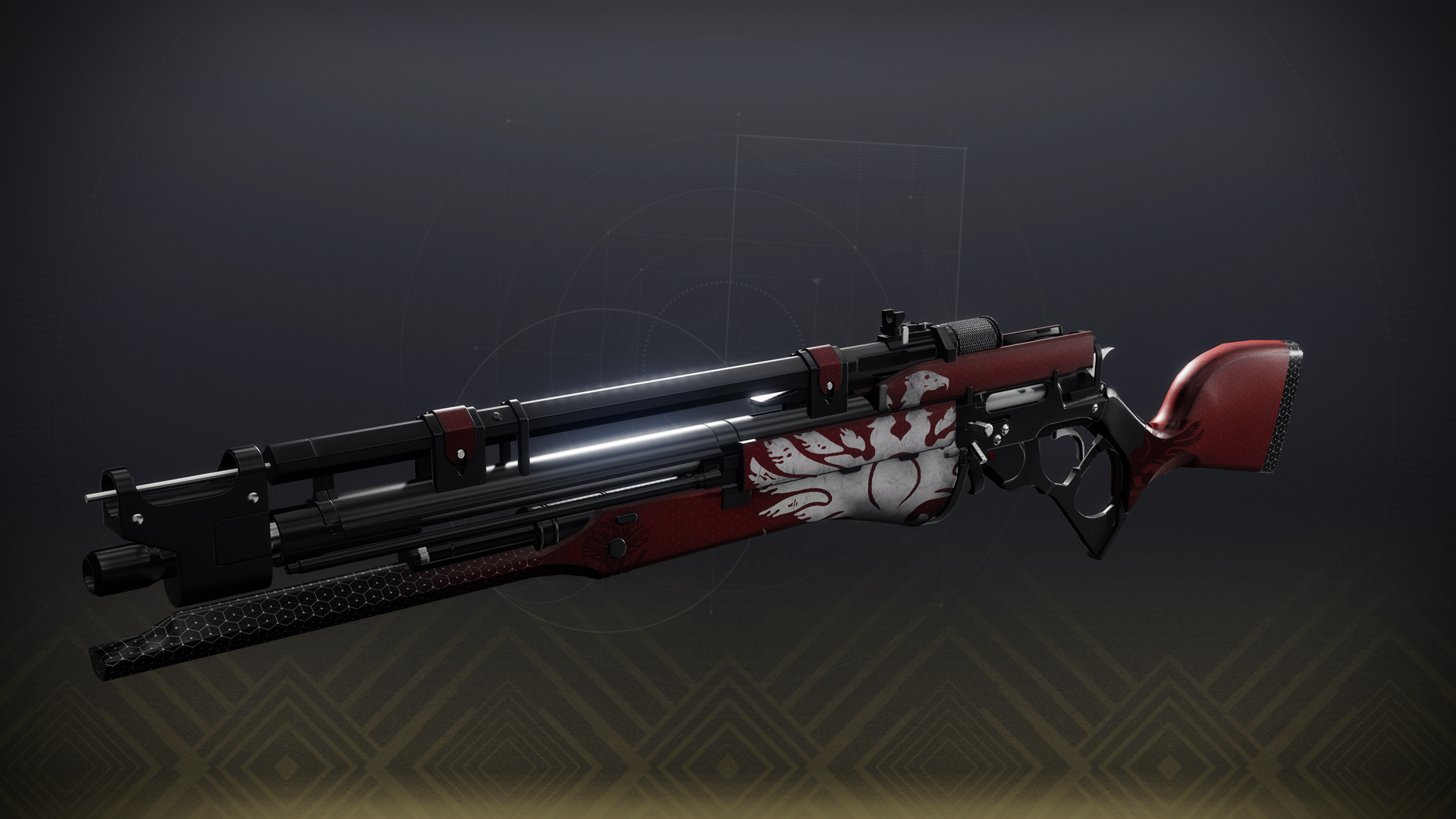 This image is a screenshot of a weapon from the Destiny series of first-person shooter video games developed by Bungie Studios and published by Bungie or Activision. It falls under the screenshot category for a copyrighted computer game or video game, and the copyright for it is most likely held by the company that developed the game. It is believed that the use of a limited number of web-resolution screenshots: