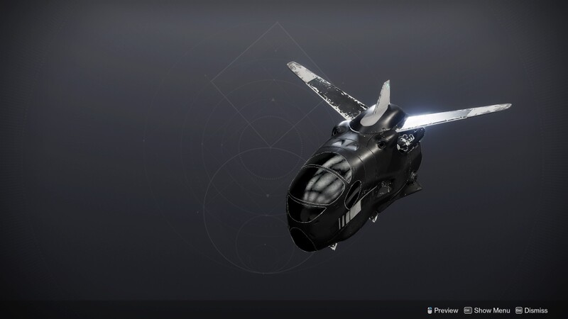 This image is a screenshot of a vehicle from the Destiny series of first-person shooter video games developed by Bungie Studios and published by Bungie or Activision. It falls under the screenshot category for a copyrighted computer game or video game, and the copyright for it is most likely held by the company that developed the game. It is believed that the use of a limited number of web-resolution screenshots: