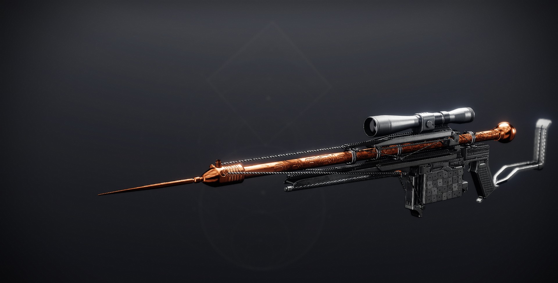 This image is a screenshot of a weapon from the Destiny series of first-person shooter video games developed by Bungie Studios and published by Bungie or Activision. It falls under the screenshot category for a copyrighted computer game or video game, and the copyright for it is most likely held by the company that developed the game. It is believed that the use of a limited number of web-resolution screenshots: