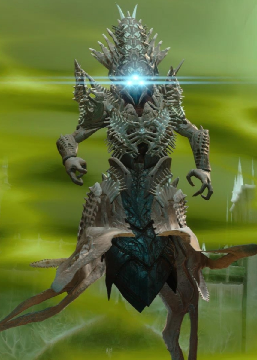 This image is a screenshot of a character or AI unit from the Destiny series of first-person shooter video games developed by Bungie Studios and published by Bungie or Activision. It falls under the screenshot category for a copyrighted computer game or video game, and the copyright for it is most likely held by the company that developed the game. It is believed that the use of a limited number of web-resolution screenshots: