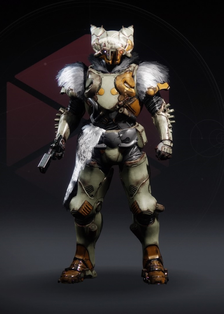 This image is a screenshot of armor from the Destiny series of first-person shooter video games developed by Bungie Studios and published by Bungie or Activision. It falls under the screenshot category for a copyrighted computer game or video game, and the copyright for it is most likely held by the company that developed the game. It is believed that the use of a limited number of web-resolution screenshots:
