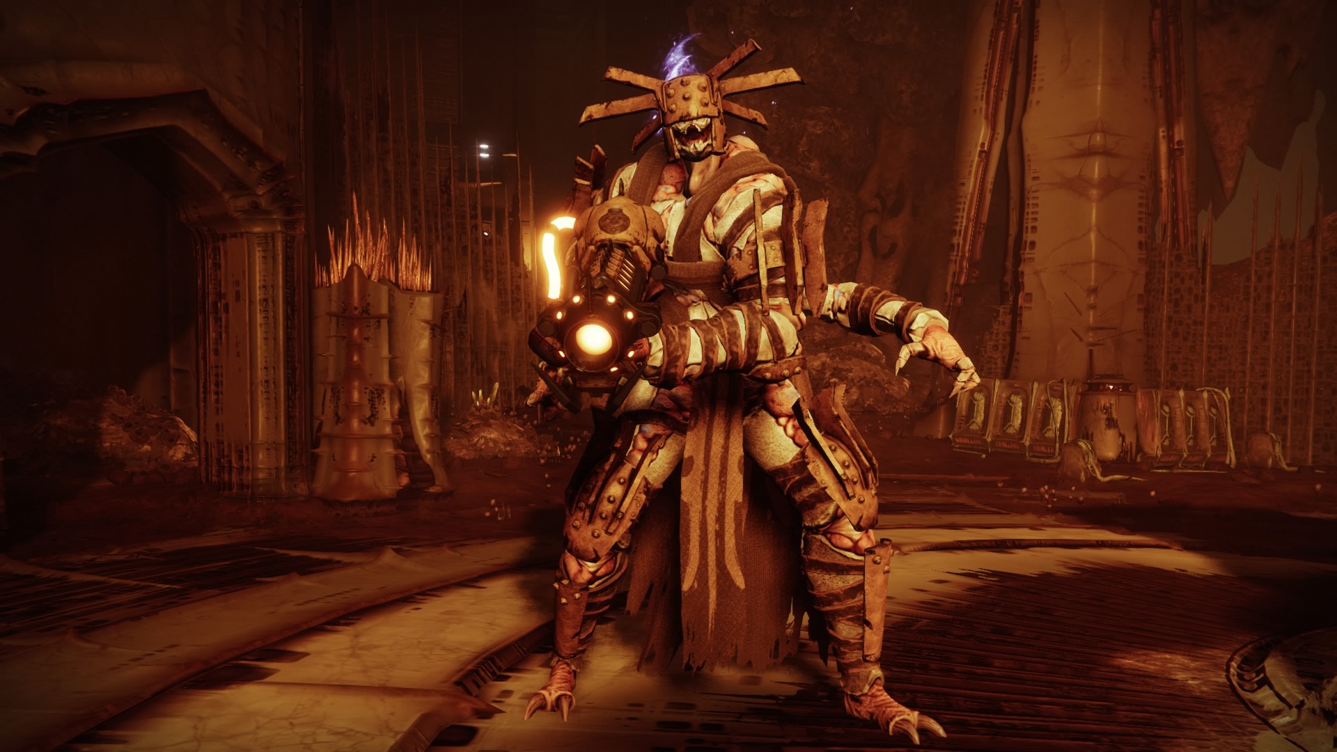 This image is a screenshot of a character or AI unit from the Destiny series of first-person shooter video games developed by Bungie Studios and published by Bungie or Activision. It falls under the screenshot category for a copyrighted computer game or video game, and the copyright for it is most likely held by the company that developed the game. It is believed that the use of a limited number of web-resolution screenshots: