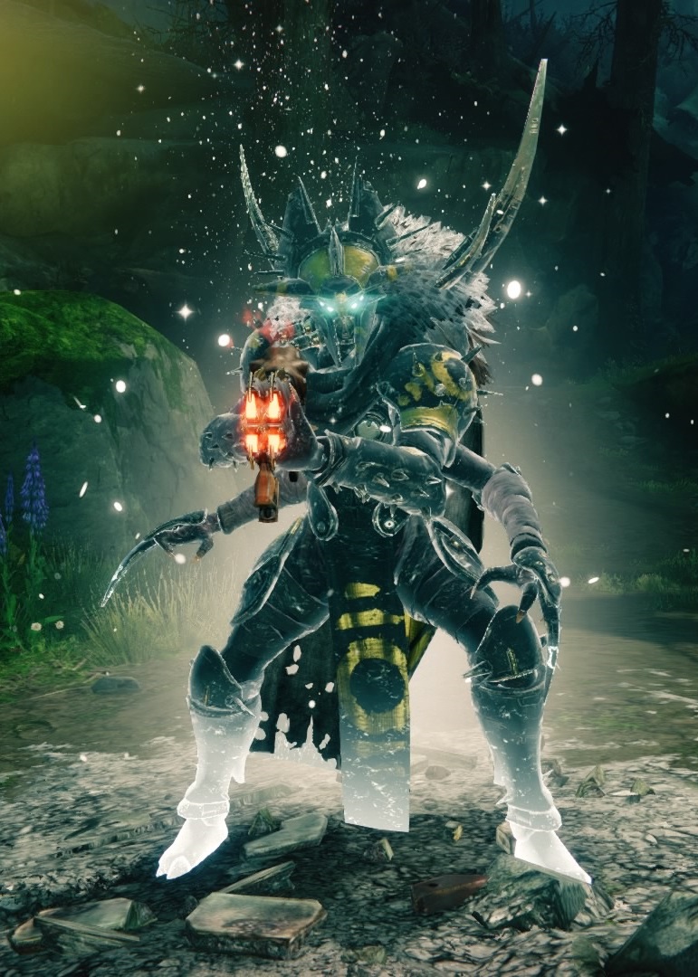 This image is a screenshot of a character or AI unit from the Destiny series of first-person shooter video games developed by Bungie Studios and published by Bungie or Activision. It falls under the screenshot category for a copyrighted computer game or video game, and the copyright for it is most likely held by the company that developed the game. It is believed that the use of a limited number of web-resolution screenshots:
