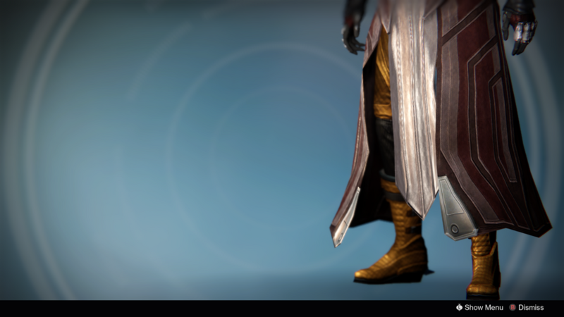 This image is a screenshot of armor from the Destiny series of first-person shooter video games developed by Bungie Studios and published by Bungie or Activision. It falls under the screenshot category for a copyrighted computer game or video game, and the copyright for it is most likely held by the company that developed the game. It is believed that the use of a limited number of web-resolution screenshots: