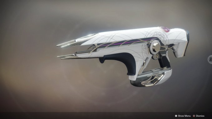 This image is a screenshot of a weapon from the Destiny series of first-person shooter video games developed by Bungie Studios and published by Bungie or Activision. It falls under the screenshot category for a copyrighted computer game or video game, and the copyright for it is most likely held by the company that developed the game. It is believed that the use of a limited number of web-resolution screenshots: