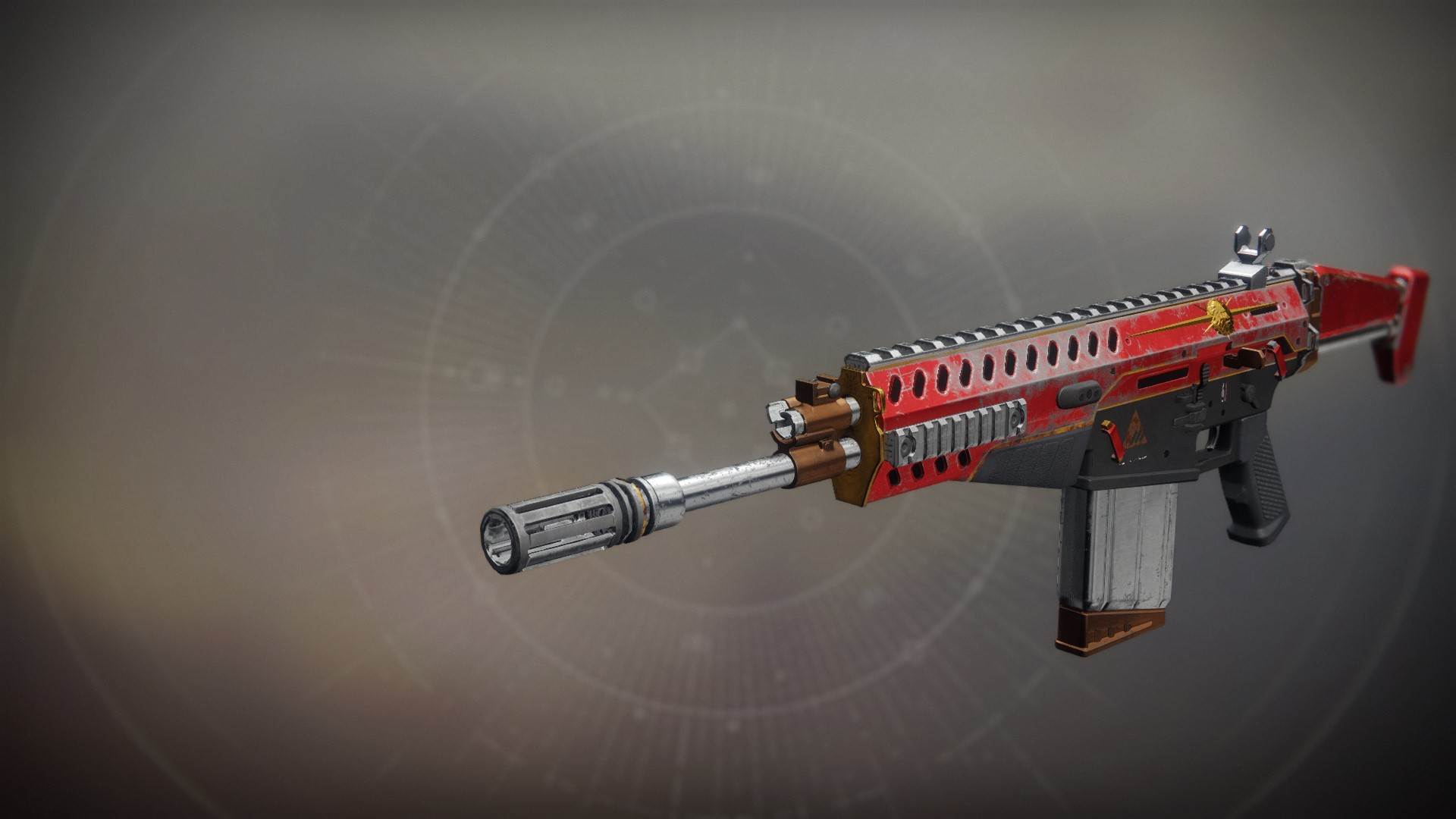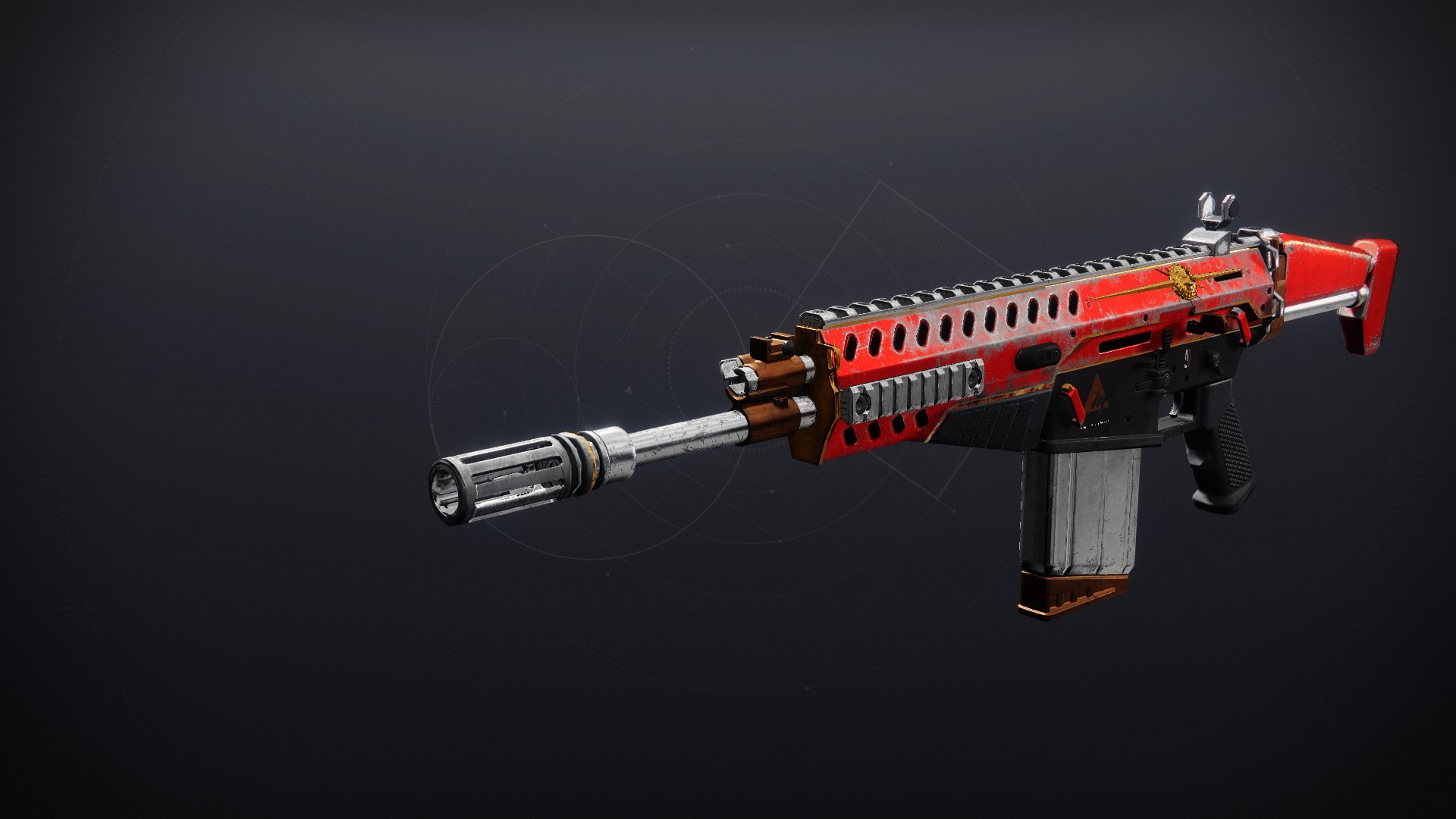 This image is a screenshot of a weapon from the Destiny series of first-person shooter video games developed by Bungie Studios and published by Bungie or Activision. It falls under the screenshot category for a copyrighted computer game or video game, and the copyright for it is most likely held by the company that developed the game. It is believed that the use of a limited number of web-resolution screenshots: