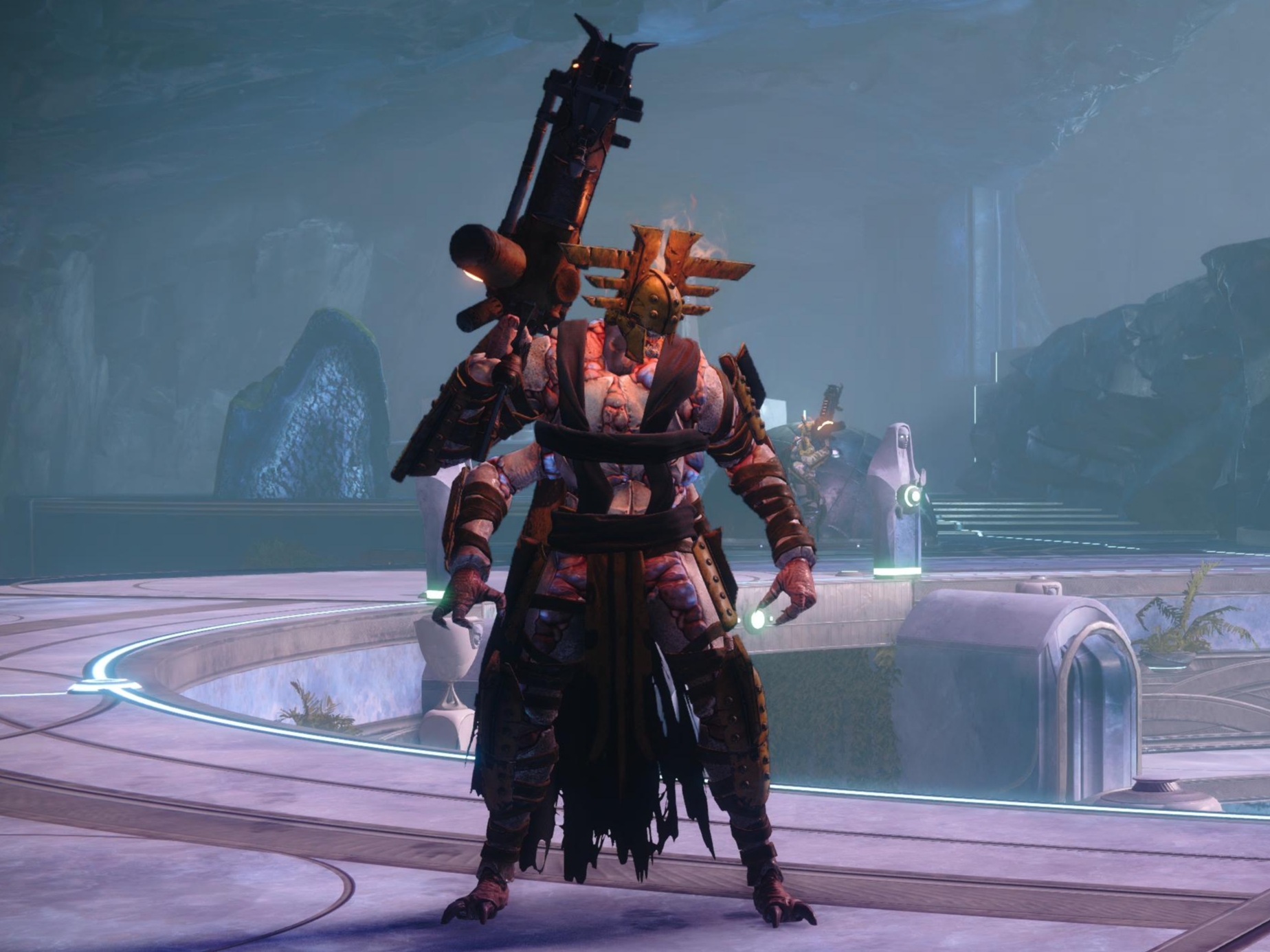 This image is a screenshot of a character or AI unit from the Destiny series of first-person shooter video games developed by Bungie Studios and published by Bungie or Activision. It falls under the screenshot category for a copyrighted computer game or video game, and the copyright for it is most likely held by the company that developed the game. It is believed that the use of a limited number of web-resolution screenshots: