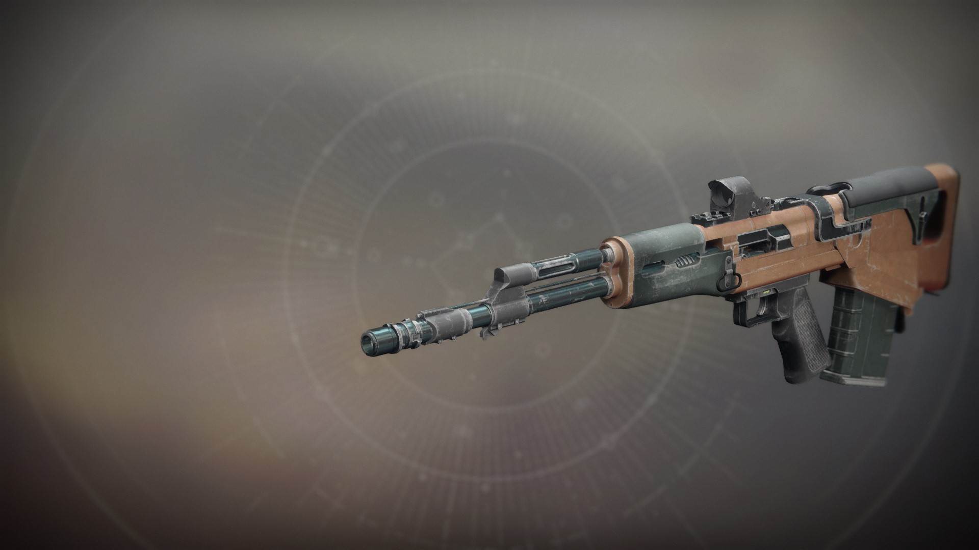 This image is a screenshot of a weapon from the Destiny series of first-person shooter video games developed by Bungie Studios and published by Bungie or Activision. It falls under the screenshot category for a copyrighted computer game or video game, and the copyright for it is most likely held by the company that developed the game. It is believed that the use of a limited number of web-resolution screenshots: