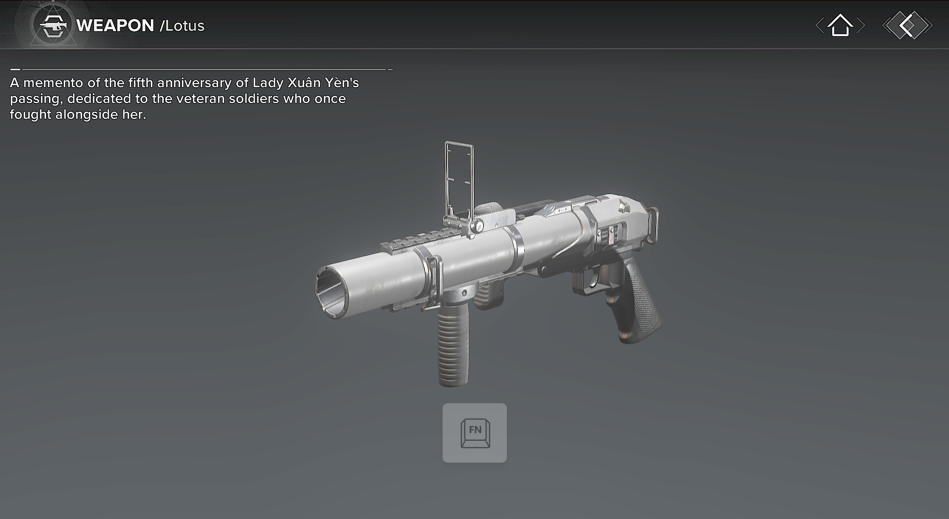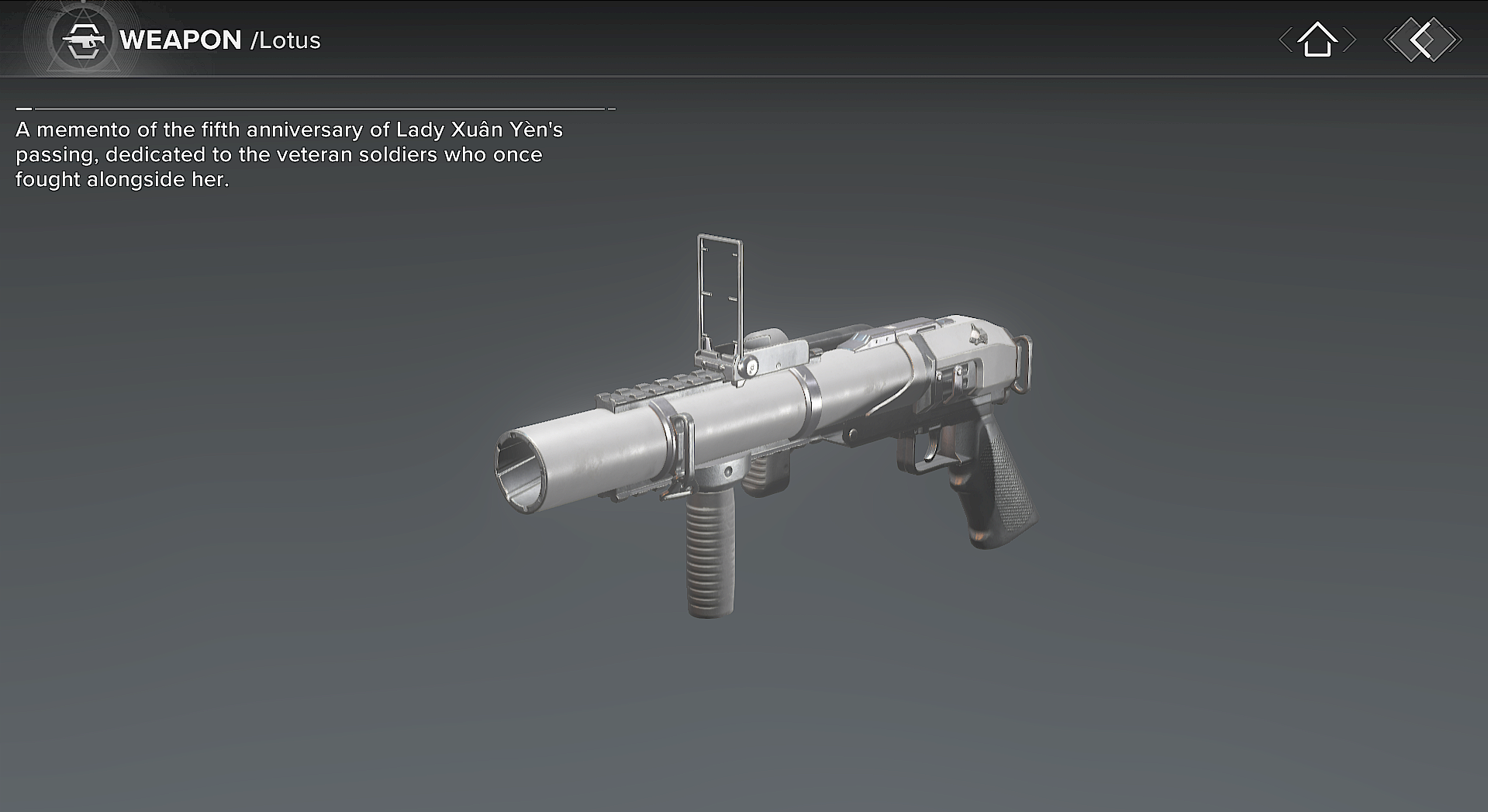 This image is a screenshot of a weapon from the Destiny series of first-person shooter video games developed by Bungie Studios and published by Bungie or Activision. It falls under the screenshot category for a copyrighted computer game or video game, and the copyright for it is most likely held by the company that developed the game. It is believed that the use of a limited number of web-resolution screenshots: