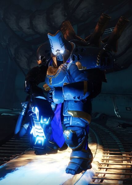 This image is a screenshot of a character or AI unit from the Destiny series of first-person shooter video games developed by Bungie Studios and published by Bungie or Activision. It falls under the screenshot category for a copyrighted computer game or video game, and the copyright for it is most likely held by the company that developed the game. It is believed that the use of a limited number of web-resolution screenshots:
