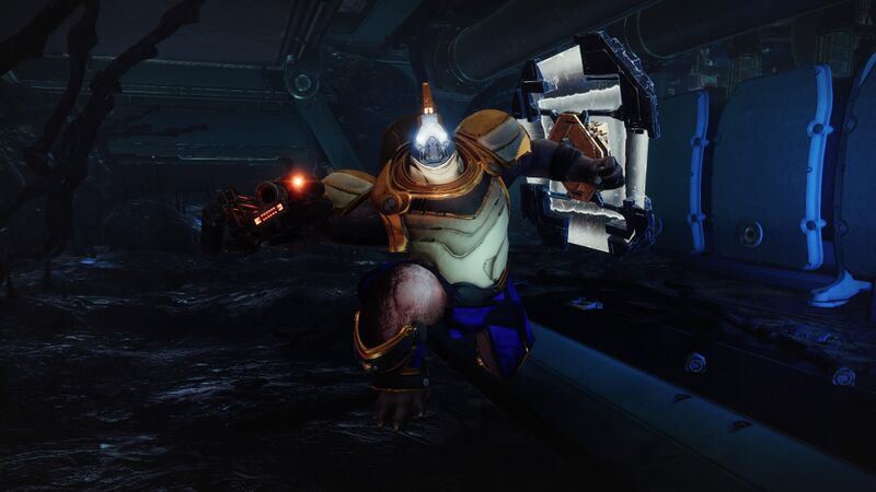 This image is a screenshot of a character or AI unit from the Destiny series of first-person shooter video games developed by Bungie Studios and published by Bungie or Activision. It falls under the screenshot category for a copyrighted computer game or video game, and the copyright for it is most likely held by the company that developed the game. It is believed that the use of a limited number of web-resolution screenshots: